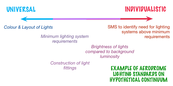 Now, I don't think is earth-shattering just yet. At one end you have the ol' prescriptive approach of "this is how we will permit you to commit aviation" and at the other, you have Safety Management Systems (SMS) and all that that entails. What I do think is pretty cool about looking at it this way is to recognise that it is a continuum. It's not two sides of a coin or two pillars supporting a bridge.